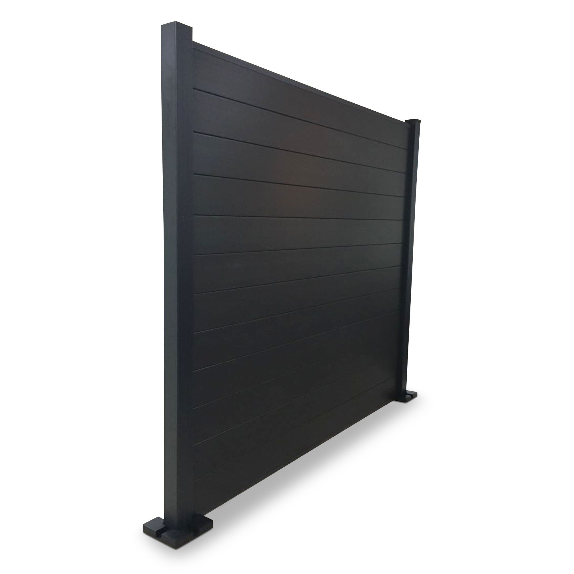 Or slat fences can use other types of slat materials like composite planks, painted metal slats, galvanized metal slats.